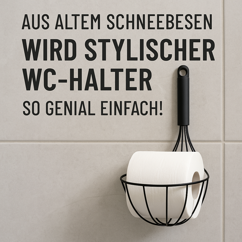 Als ich neulich beim Aufräumen der Küchenschublade einen alten Schneebesen in der Hand hielt, wollte ich ihn eigentlich wegwerfen. Der Griff war locker, ein paar Drähte verbogen, und ehrlich gesagt hatten wir schon zwei bessere Schneebesen im Schrank. Aber dann scrollte ich abends durch Pinterest – wie man das so macht, wenn man eigentlich schlafen sollte – und stieß auf ein Foto: Ein Schneebesen, umfunktioniert zum Toilettenpapierhalter. Ich musste zweimal hinsehen. Das sah tatsächlich ziemlich cool aus. Industrial Style, minimalistisch, ein bisschen verrückt. Mein erster Gedanke: „Das mache ich auch!" Mein zweiter Gedanke: „Kann das überhaupt funktionieren?" Und mein dritter: „Was sagt mein Partner dazu, wenn plötzlich ein Schneebesen im Bad hängt?"