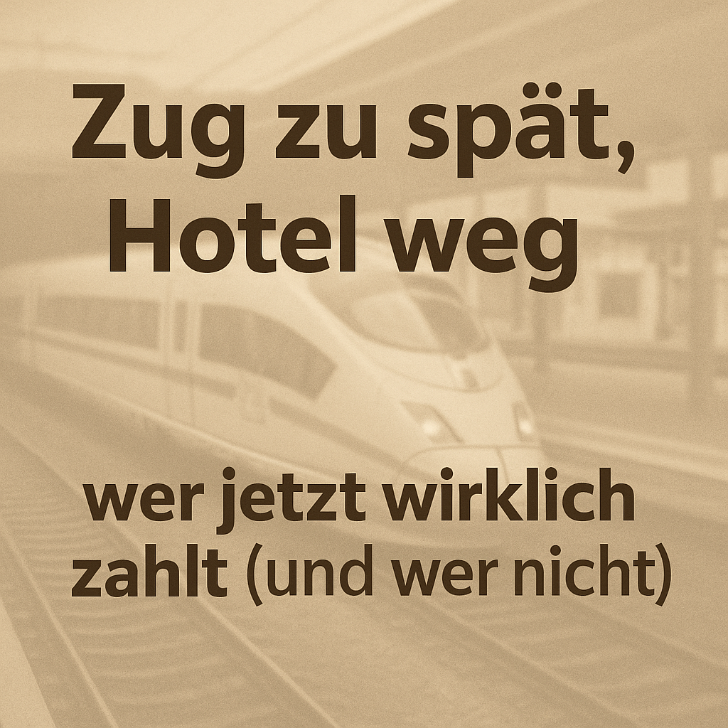 🔹 Worum es heute geht: Was passiert, wenn durch Zugverspätung ein gebuchtes Hotel verloren geht, welche Versicherungen unter welchen Bedingungen zahlen und welche Rechte man gegenüber der Bahn hat.