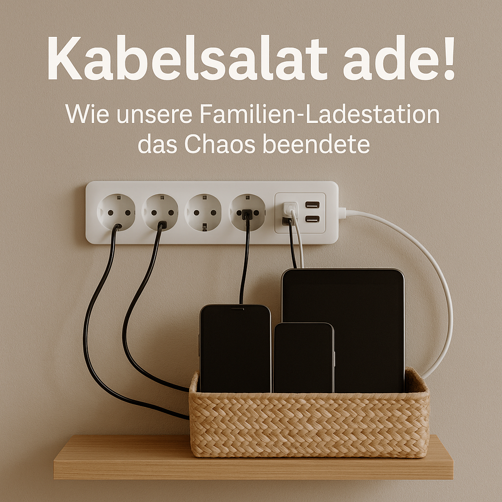 🔹 Worum es heute geht: Wie eine zentrale Familien-Ladestation das Kabelchaos beendet und nebenbei Strom, Nerven und Zeit spart.