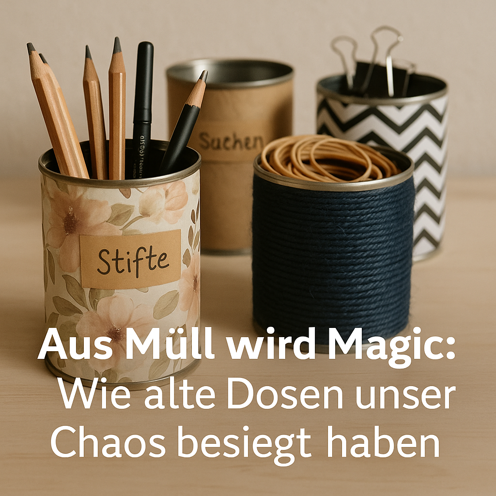 Inzwischen nutzen wir etwa fünfzehn verschiedene Dosen im ganzen Haus. Das klingt nach viel, aber tatsächlich fallen sie kaum auf, weil sie sich ins jeweilige Zimmer einfügen. Im Arbeitszimmer stehen drei schlichte Dosen für Büromaterial, in der Küche zwei größere für Kochlöffel und Schneebesen, im Bad eine kleine für Wattestäbchen. Jede hat ihren Zweck, jede sieht anders aus, aber zusammen ergibt sich ein stimmiges Bild. Und das Schönste: Jedes Mal, wenn ich eine benutze, denke ich kurz daran, dass das eigentlich Müll hätte werden sollen. Fühlt sich richtig gut an.